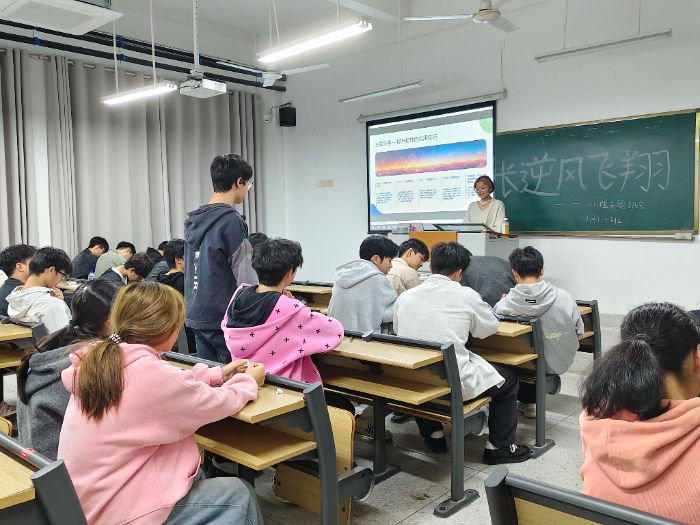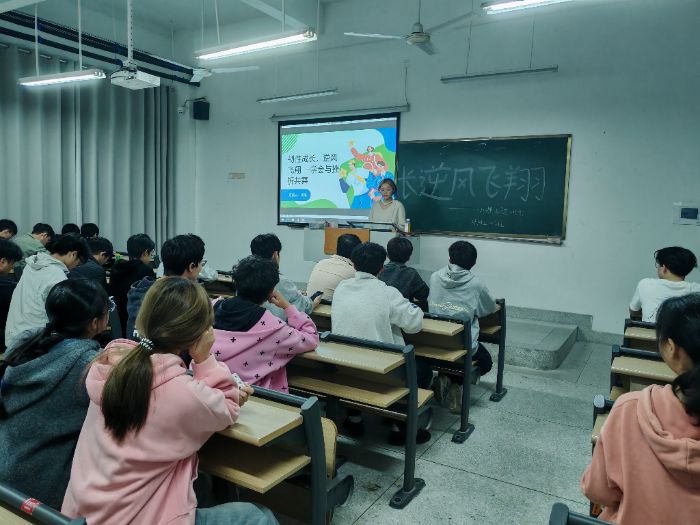 班會伊始,心理委員以“蝴蝶破繭”的勵志小故事導入,引發(fā)學生對挫折意義的深度思考,隨后詳細介紹了班會主題、流程及預(yù)期目標,迅速調(diào)動起現(xiàn)場氛圍。在主題分享環(huán)節(jié),心理委員通過PPT展示了學業(yè)挫折、人際矛盾、生活變故等常見案例,系統(tǒng)講解了心理韌性的概念、重要性,并分享了積極自我暗示、合理情緒宣泄等實用提升方法,期間穿插互動提問,引導學生主動思考“哪些品質(zhì)有助于應(yīng)對挫折”,現(xiàn)場響應(yīng)熱烈。
