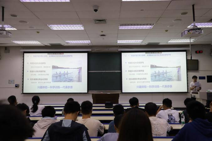 浙江大學的張奕山為我們分享了賽艇運動在科創融合方面所能發揮的重要作用,為同學們在科研創新方面提出了新途徑、新思路;天津大學的姜子游同學為我們分享了他從零開始接觸賽艇和在聯系賽艇中的所思所感;同濟大學的王溥銘重溫了兩校賽艇俱樂部的深厚友誼,并和現場同學進行了科研創新交流;最后,上海立信會計金融學院的王薩迪同學,詳細分享了體育給他帶來的改變和對體教融合的看法。通過自己的故事鼓勵大家在大學期間堅持運動,把握機會。