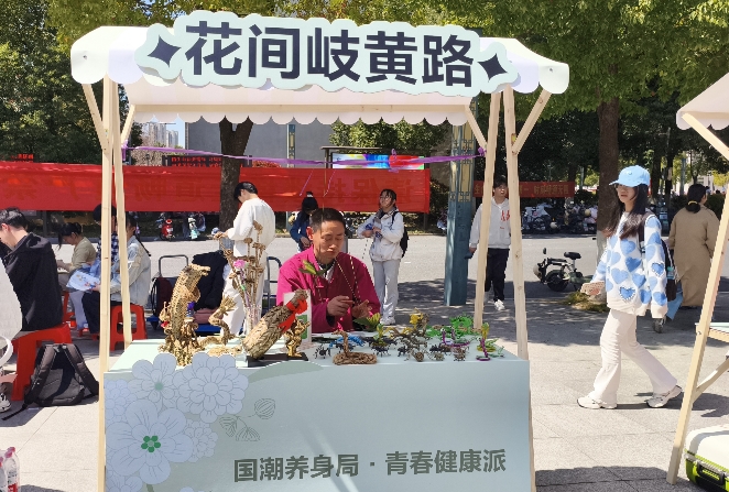 手持華為手機的學生排起長隊,享受免費貼膜服務,掃碼加入官方社群還可領取限量版校園聯名卡套。此次活動旨在通過便捷服務拉近品牌與年輕群體的距離。 活動主會場“花間岐黃路”熱鬧非凡,主題展臺融合傳統文化與現代活力。學生親手制作艾草錘,體驗中醫養生智慧;糖畫師傅以勺為筆、糖漿為墨,勾勒出靈動圖案;棕編藝人指尖翻飛,棕葉化身玫瑰、螳螂,引得師生連連贊嘆;團扇繪畫、風箏DIY讓藝術靈感自由綻放,作品可帶走留念;“快樂平板撐”擂臺賽笑聲不斷,參與者堅持滿3分鐘即可獲得華為運動手環;背景墻以鮮花裝點,定格青春瞬間;完成任意兩項體驗即可抽取盲盒,內含校園文創書簽、非遺小擺件等驚喜禮品。