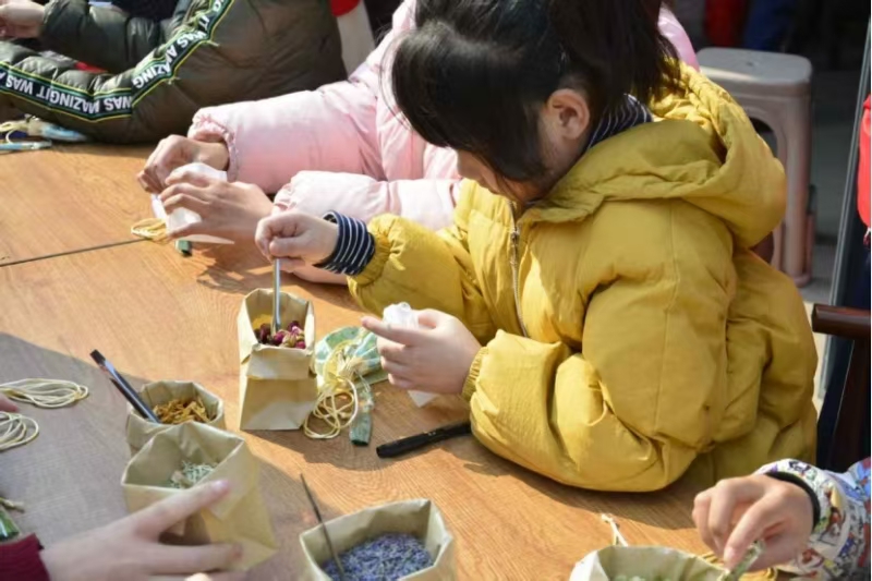 春意融融的三月,江蘇師范大學科文學院青年志愿者協會灼灼風華服務隊走進泉山區子房村,開展了一場別開生面的非遺香包制作活動。志愿者們以“非遺傳承+志愿公益”為主題,帶領孩子們穿針引線、填充香料,在動手實踐中感受傳統手工藝的精妙。活動現場,孩子們興致勃勃地挑選布料、搭配彩繩,制作出一個個獨具特色的香包,稚嫩的臉龐寫滿成就感。通過互動教學與趣味問答,志愿者們不僅傳遞了香包驅疫祈福的文化內涵,更在孩子們心中播下了文化傳承的種子。