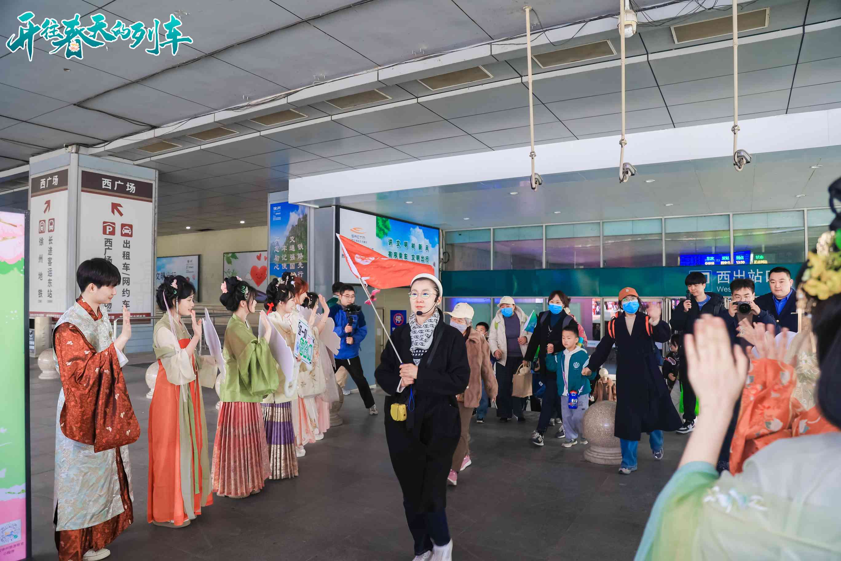 “有朋自遠方來,不亦樂乎!”在“水韻江蘇”主題旅游列車活動中,灼灼風華服務隊的志愿者們化身古風使者,以漢服禮儀為徐州文旅代言。高鐵站臺間,衣袂飄飄的志愿者們向旅客遞上特色書簽、香囊,用盈盈笑意傳遞楚漢故里的熱情。不少游客駐足合影,驚嘆于漢服華裳的典雅之美。這場古今交融的迎賓儀式,不僅成為車站里亮麗的風景線,更讓八方來客在第一時間感受到徐州“國潮漢風”的城市名片。