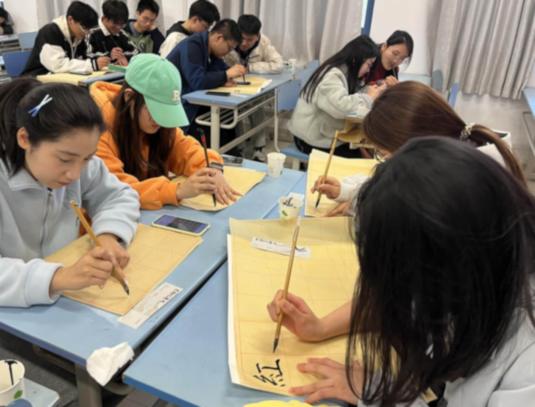 圖為同學(xué)書寫毛筆字。郝磊 供圖