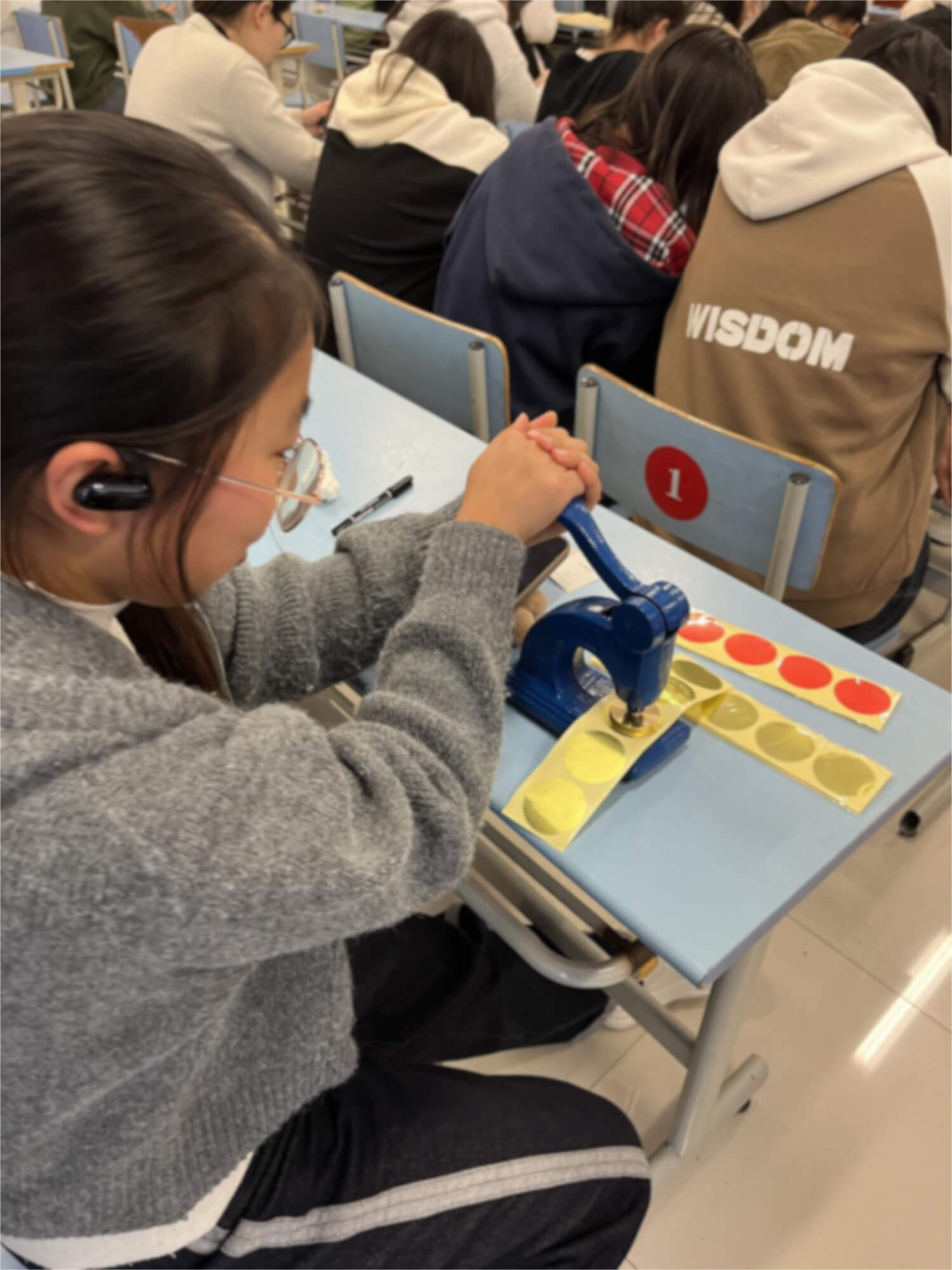 圖為同學(xué)裁剪壓制好的圓形紀(jì)念幣。郝磊 供圖