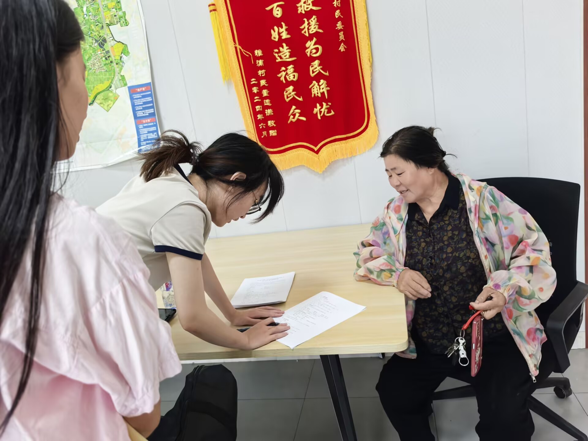 圖為團隊成員在雅浦村委會協助村民填寫調研問卷。孫佳藝 供圖