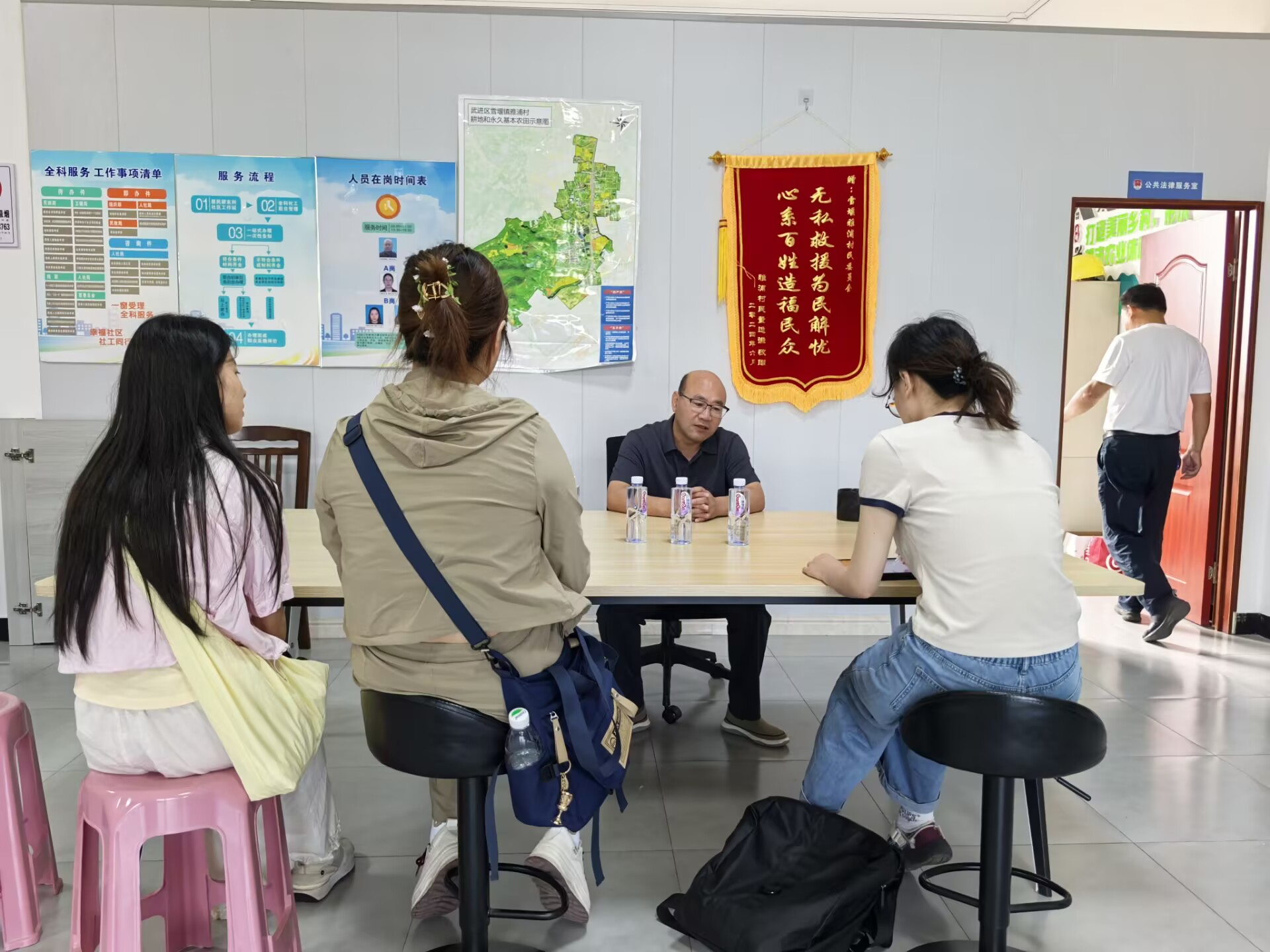 圖為團隊成員在雅浦村村委會與雅浦村書記訪談。孫佳藝 供圖