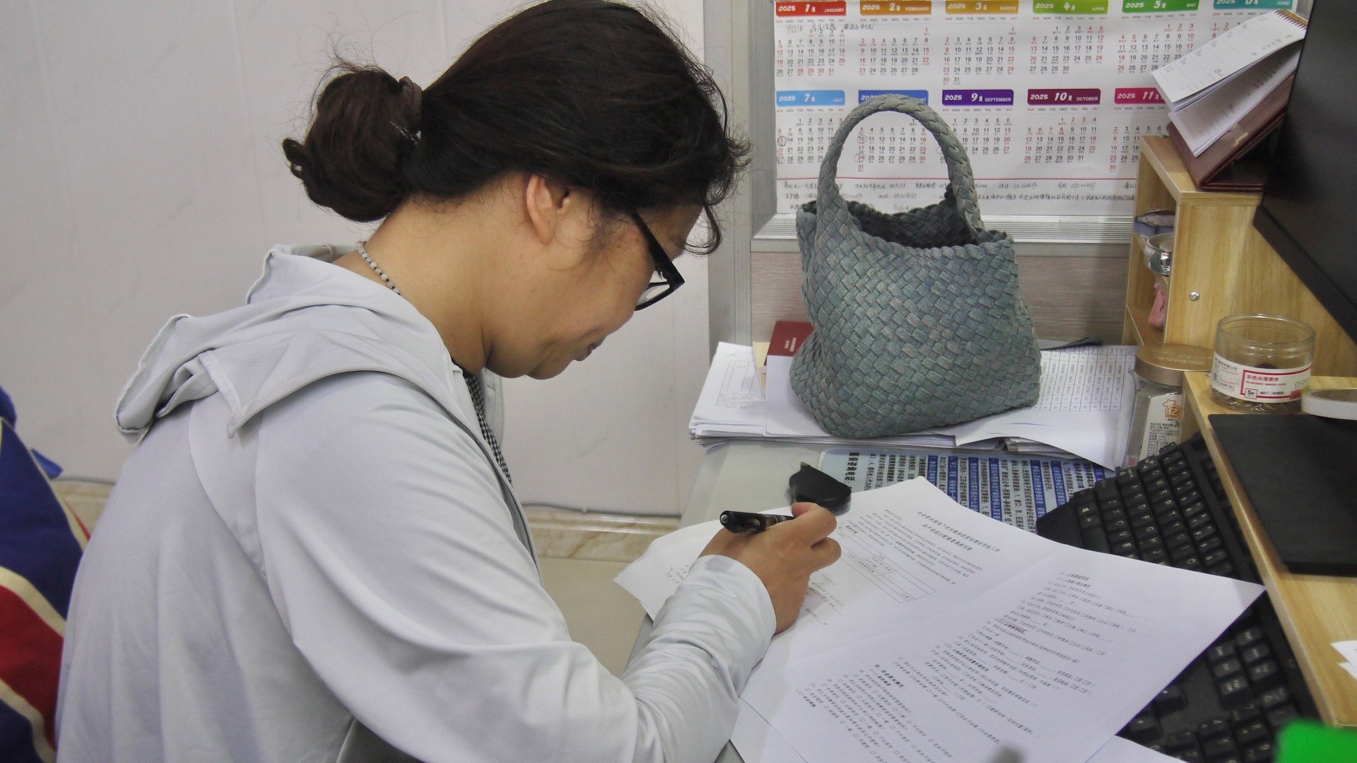圖為漕橋村企業會計填寫問卷。孫佳藝 供圖
