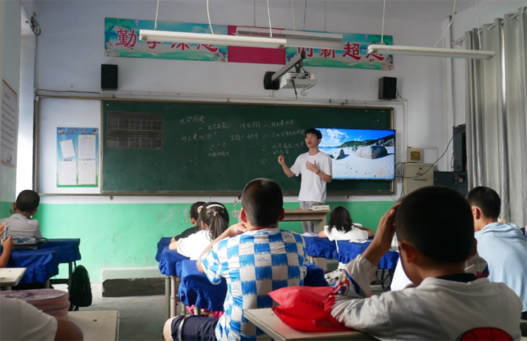 儀式結束后,支教老師們迅速進入角色,8點半準時迎來了他們在來嶺小學的第一堂課。