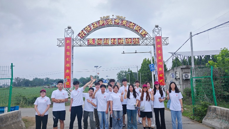 圖為實踐隊員在實踐地夏餉鋪村前合影留念