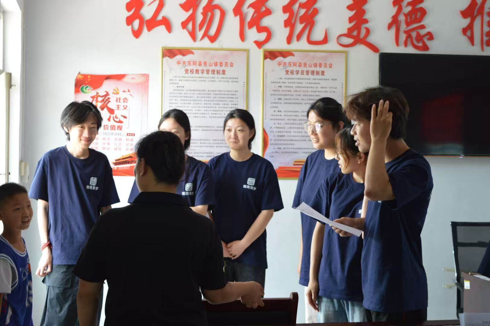 支教隊隊長韓增睿代表全體隊員鄭重承諾:“接下來的十五天,我們實踐隊成員,將認(rèn)真負(fù)責(zé)做好教育工作,結(jié)合當(dāng)?shù)匚幕_展特色活動,發(fā)揮專業(yè)特長,給孩子們帶來新的學(xué)習(xí)體驗。”