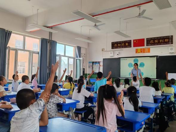 最后的“五感詞匯”環節,孩子們化身小小觀察家,用視覺、聽覺、嗅覺、觸覺、味覺去描述生活中的事物。“夏天的風是‘熱乎乎的’!”“媽媽炒的菜‘香香的’!”“雨滴的聲音是‘滴滴答答’的!”孩子們天馬行空的表達,讓平凡的詞匯變得鮮活有趣。學生們積極參與,樂此不疲,這不僅豐富了他們的詞匯庫,而且增強了他們的記憶和表達能力。在這樣的學習環境中,孩子們在不知不覺中提升了語言技能,為將來的學習打下了堅實的基礎。
