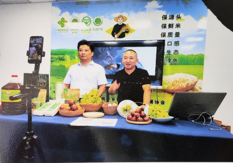 (圖為柿樹崗鄉農產品直播現場。王羽 攝)