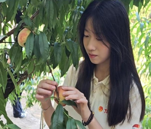 桃園采風:鏡頭里的甜蜜收獲記 赤日當空,“遺韻鄉傳”實踐隊隊員們走進嚴圣鷹家庭農場的桃林。在桃農示范“輕捏果柄、旋轉采摘”的技巧后,隊員們分組展開采收作業。經過一下午高效勞作,指定片區的采收任務圓滿完成。望著碼放整齊的桃筐,桃農李大叔難掩喜悅:“多虧了這群大學生,幫忙搶下了黃金采收期!”。隊員們在體驗桃子采摘的同時,也以桃林為天然影棚,錄制了生動活潑的帶貨短視頻。