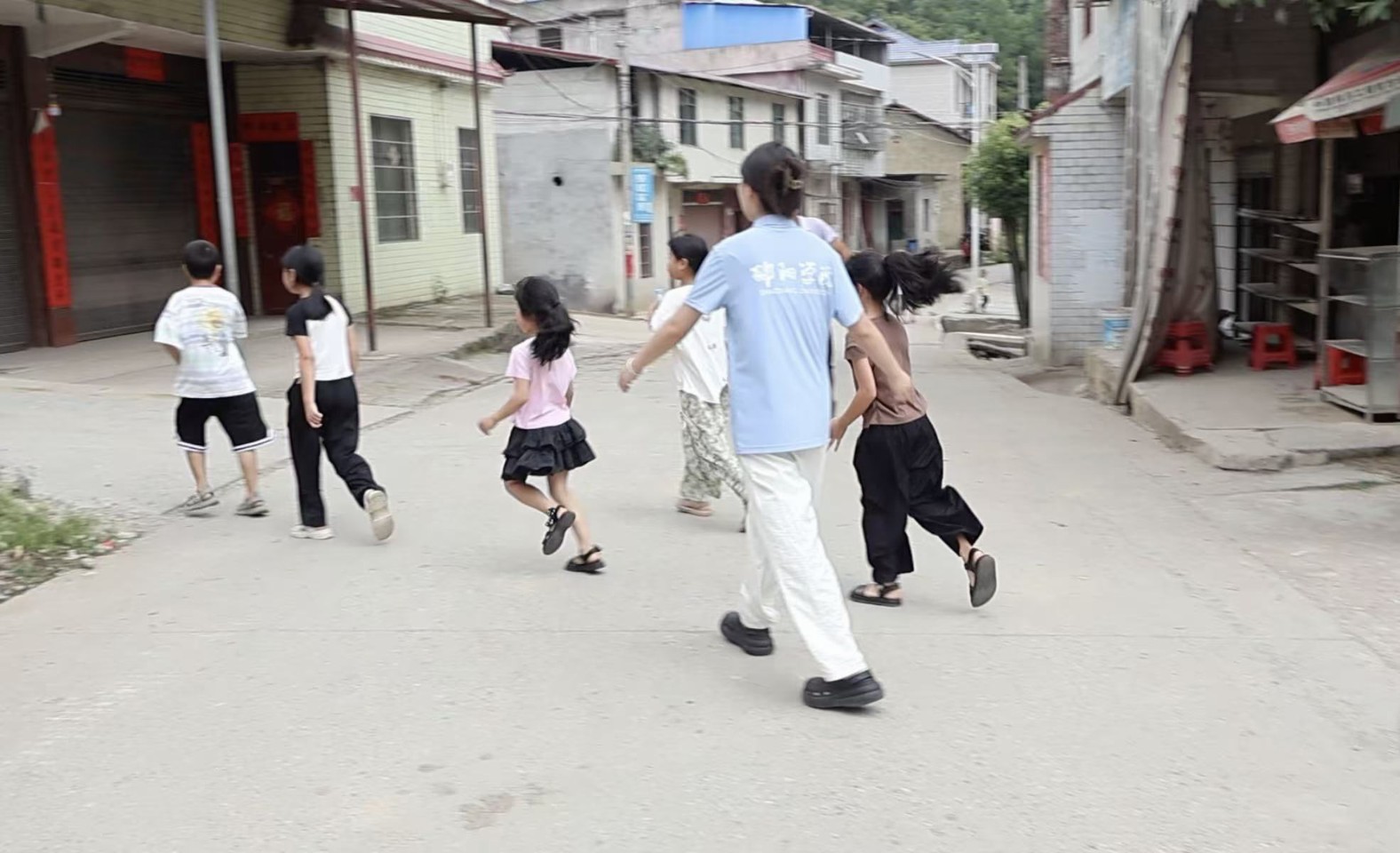 結(jié)束上午課程后,實(shí)踐團(tuán)成員細(xì)心分組,一路護(hù)送孩子們回家。山間小徑上,大手牽著小手,孩子們放聲歌唱,清脆的童謠穿透山林,歡聲笑語在山谷間回蕩。直至目送每個(gè)孩子安全踏入家門,與家長(zhǎng)完成交接,這份貫穿始終的守護(hù)承諾,成為“語筑童夢(mèng)”最堅(jiān)實(shí)的注腳。