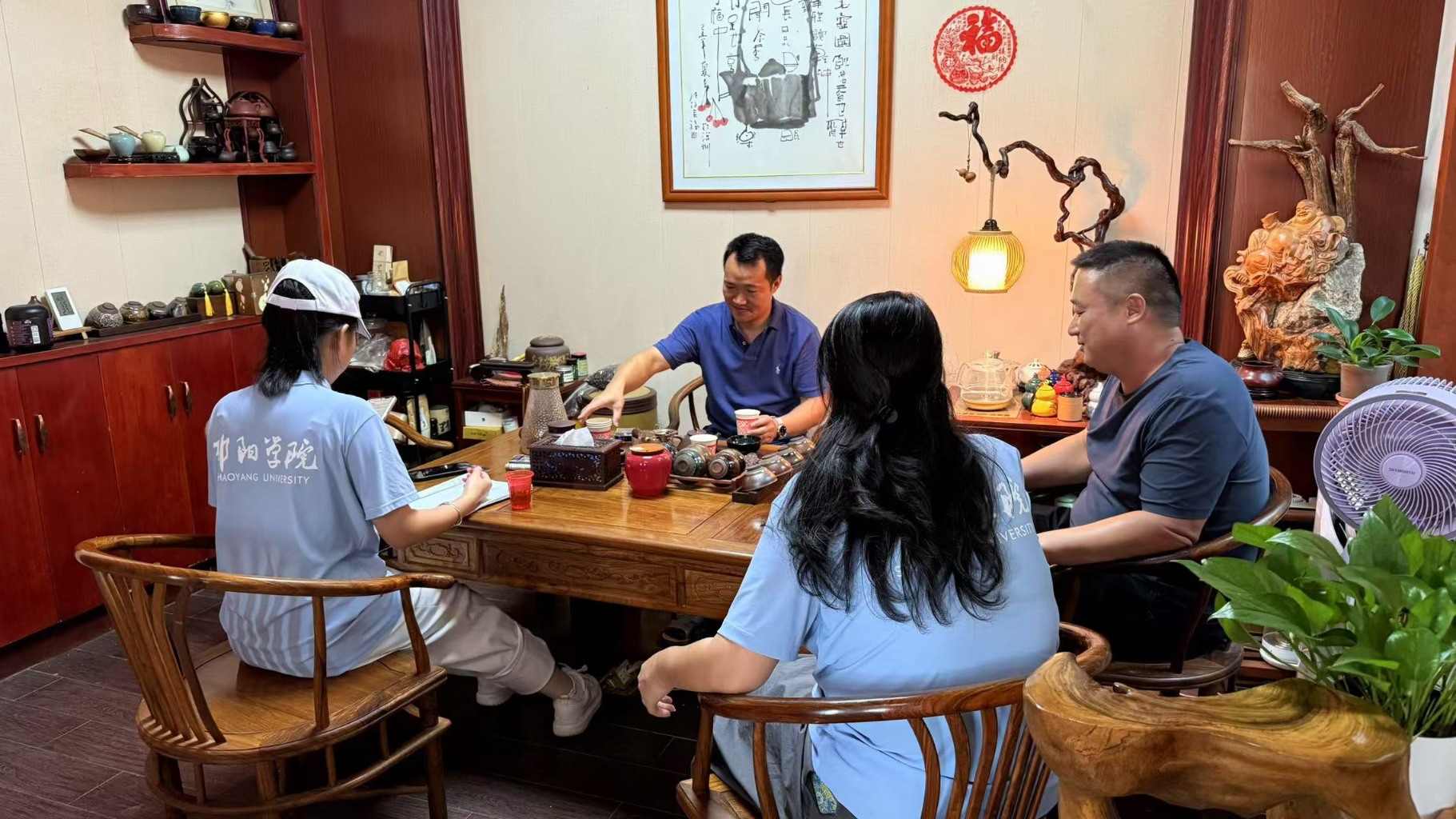 (圖為李婷老師和李江老師帶領(lǐng)團(tuán)隊(duì)成員采訪蔣開達(dá)先生,龔瑾供圖)