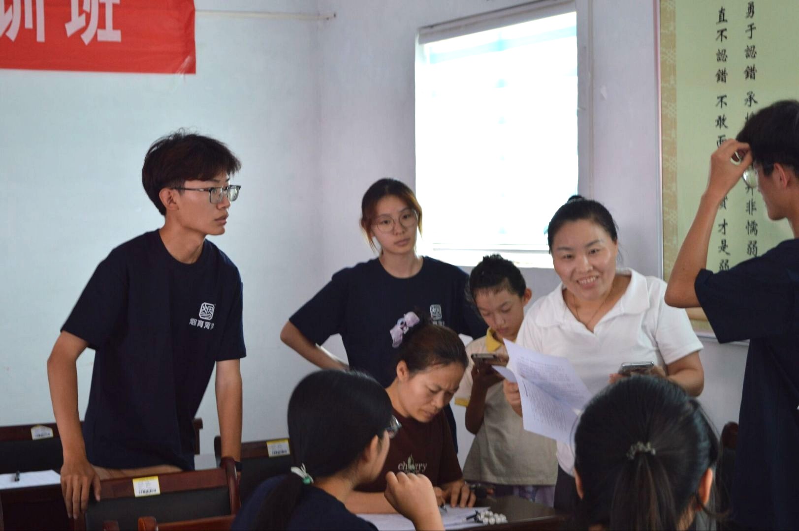 圖為支教隊員指引家長填寫報名表。李健哲供圖