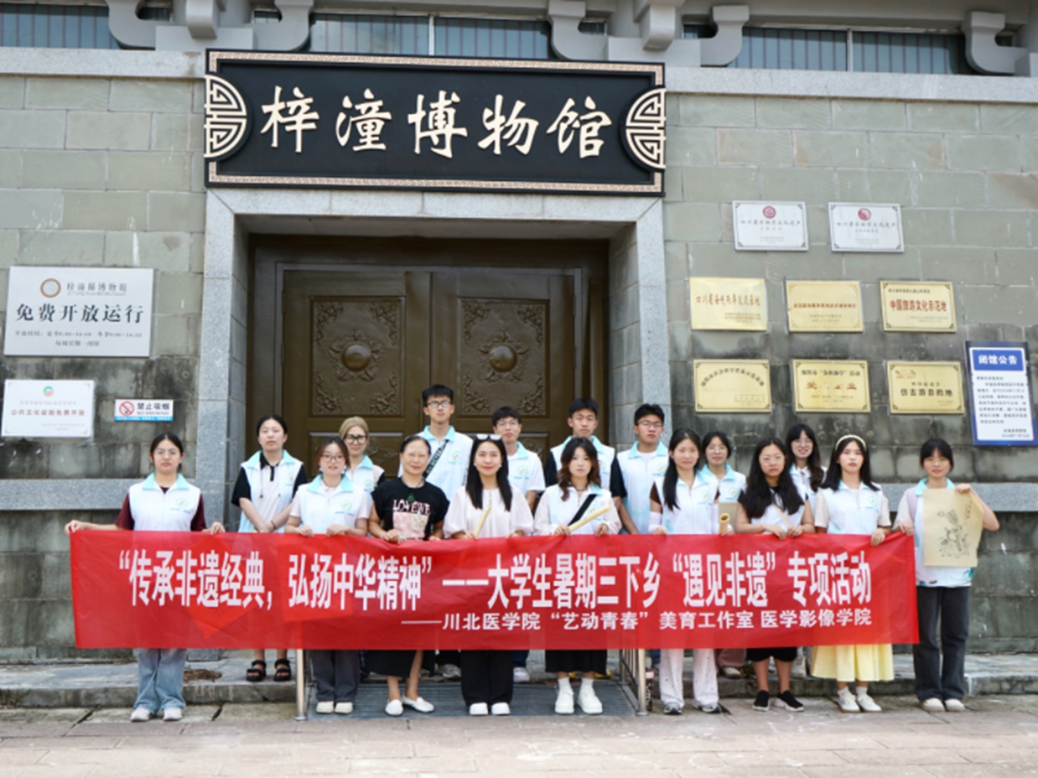 為弘揚中華優秀傳統文化,推動非遺技藝“活態傳承”,激發愛國情懷與社會擔當,7月8日,川北醫學院“科韻綿州·鄉約未來”醫學影像學院赴綿陽國情研習先鋒隊與川北醫學院“藝動青春”美育工作室聯合,于綿陽市梓潼縣開展實踐活動,近距離感受梓潼木刻年畫的獨特魅力與“兩彈一星”元勛們的奉獻精神。