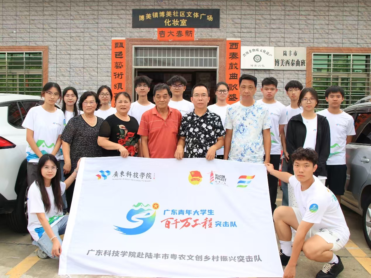 7月9日,粵農文創突擊隊滿懷熱忱,奔赴陸豐市博美鎮蛟溪村這片充滿非遺文化的沃土。隊員們懷揣著對傳統文化的敬畏與傳承文創的使命,開啟了一段探索西秦戲與博美飄色的文化之旅。此次行程不僅是一次學習,更是一場與歷史對話、與傳統交融的實踐,旨在挖掘非遺魅力,探尋傳統文化與現代的融合之道。