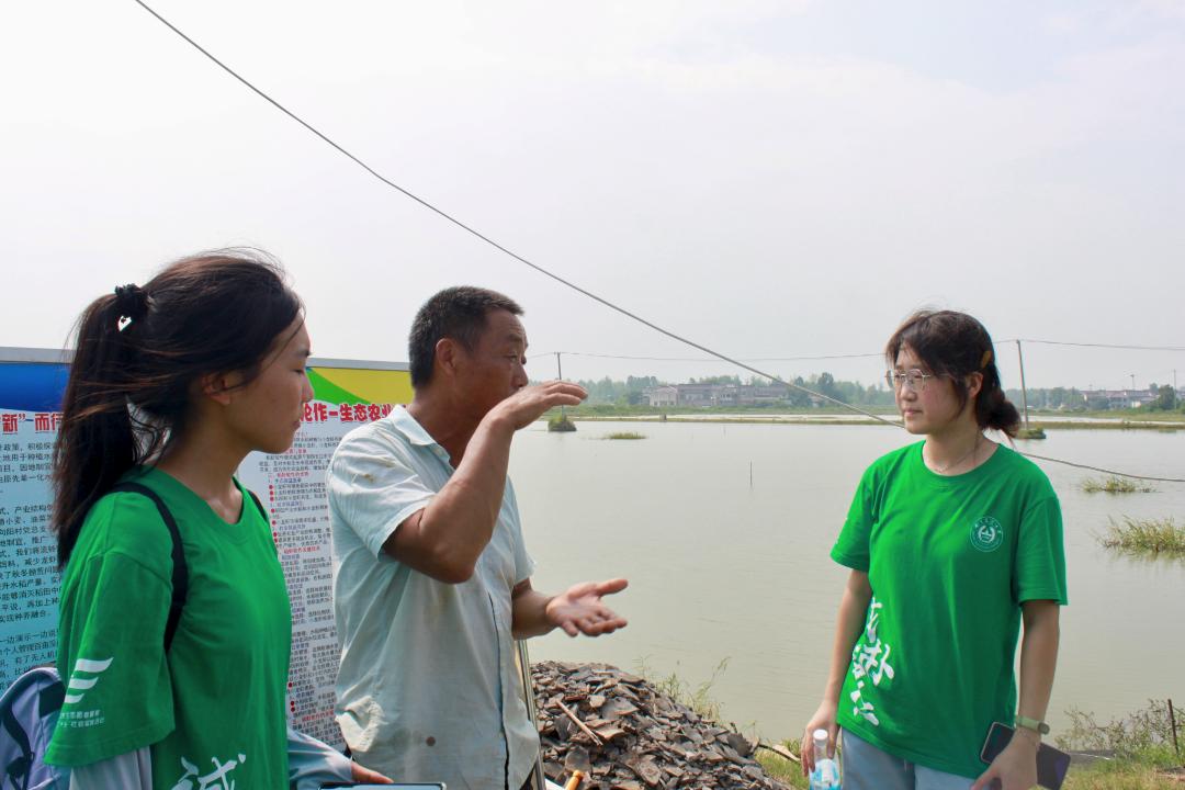 午后,實踐團來到稻蝦輪作示范基地,成員們圍繞生態循環、成本控制、科技賦能等問題,與負責人深入交流“水稻—小龍蝦”輪作模式。