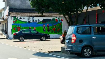 在斑駁的老墻前,實踐團以筆為媒傳播托口底蘊,從構圖設計到顏料調配,再到細節補充,每一步都承載著團隊的匠心,主創成員彭偉航:“作品一以明快色彩勾勒的山水,反應托口鎮的自然風光,點綴其間的累累楊梅,生動展現產業特色和鄉村生活。作品二則是把楊梅特色、食堂場域巧妙相融。”