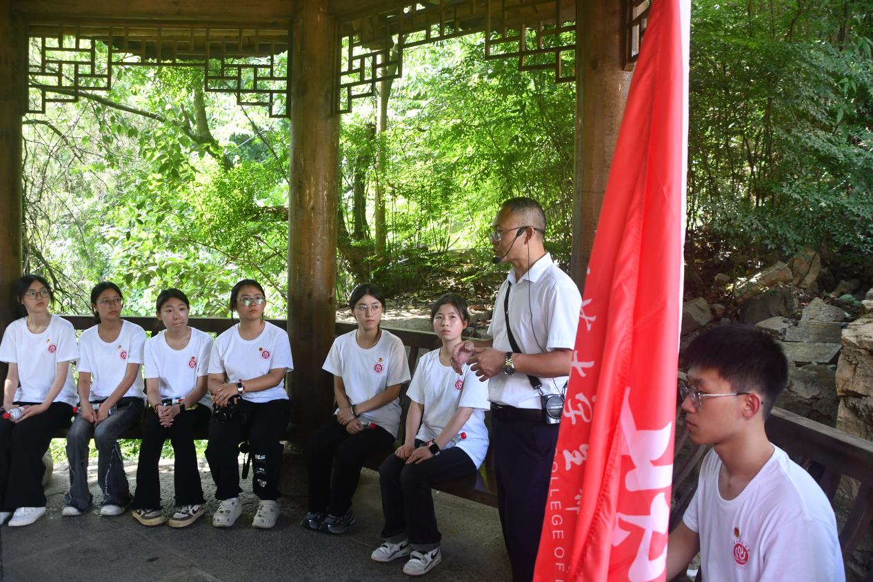 參觀過程中,何老師為志愿服務團的成員們生動講述了南腰界的革命斗爭史:1934年,紅三軍轉戰南腰界,在此休整擴軍、建立農村革命根據地;同年10月,紅六軍團歷經甘溪血戰后與紅三軍會師,兩軍團合力發動湘西攻勢,策應中央紅軍長征。成員們被游擊隊長陳亮玉“刀子架在脖子上,眉毛不動眼不眨”的英勇口號所震撼,深刻地體會到了紅軍將士們“不怕犧牲、艱苦奮斗”的精神內涵。