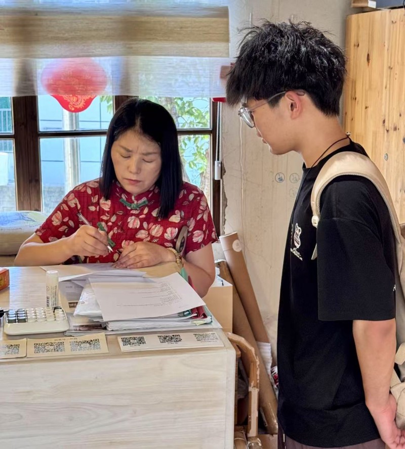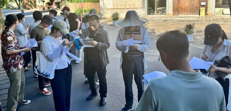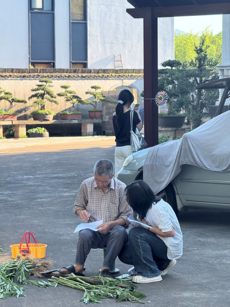 (給村民發放調查問卷)