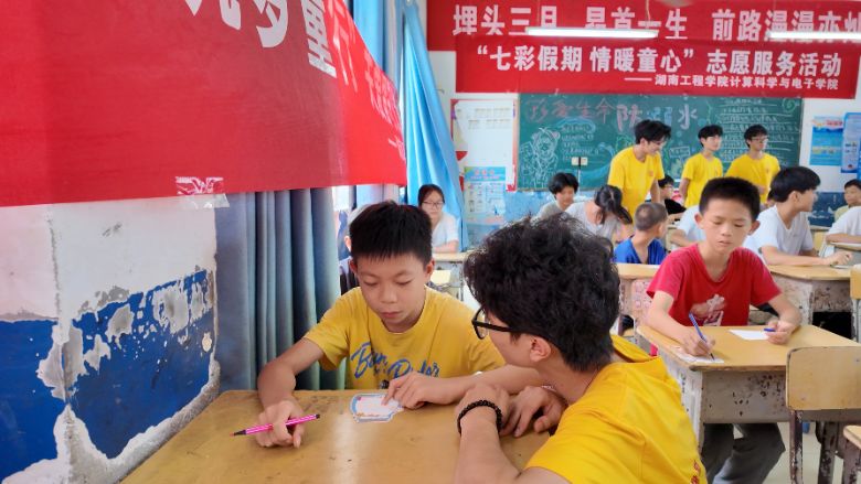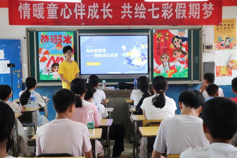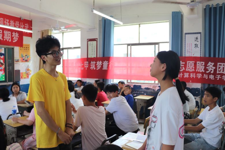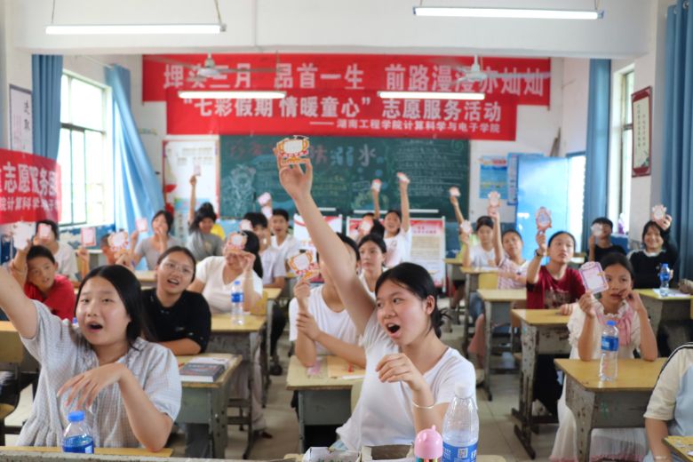 郴州永興7月10日電 “我要先好好學(xué)習(xí)考上一個好的高中和大學(xué),之后再成為一名警察為人民服務(wù)!”,孩子們在勵志卡片上堅定寫下自己的夢想。7月10日,湖南工程學(xué)院“星耀七甲·筑夢童行”志愿服務(wù)團在郴州市永興縣七甲鄉(xiāng)開啟三下鄉(xiāng)社會實踐,為當(dāng)?shù)亓羰貎和_展“七彩筑夢,為愛啟航”勵志教育課,以青春力量點亮孩子們的夢想。課堂上,實踐團成員以結(jié)合自身大學(xué)生活,鼓勵孩子們勇敢探索。通過“寫勵志目標(biāo)卡片”互動,引導(dǎo)孩子們暢談夢想,并將目標(biāo)與學(xué)習(xí)、成長關(guān)聯(lián),激發(fā)他們的學(xué)習(xí)動力與表達勇氣,讓更多的孩子們在歡笑和感動中樹立起自己的理想信念。這節(jié)課讓他們從只見過家門口的山河到發(fā)現(xiàn)“長大原來這么有意思”,心里悄悄念著“我也想試試”!
