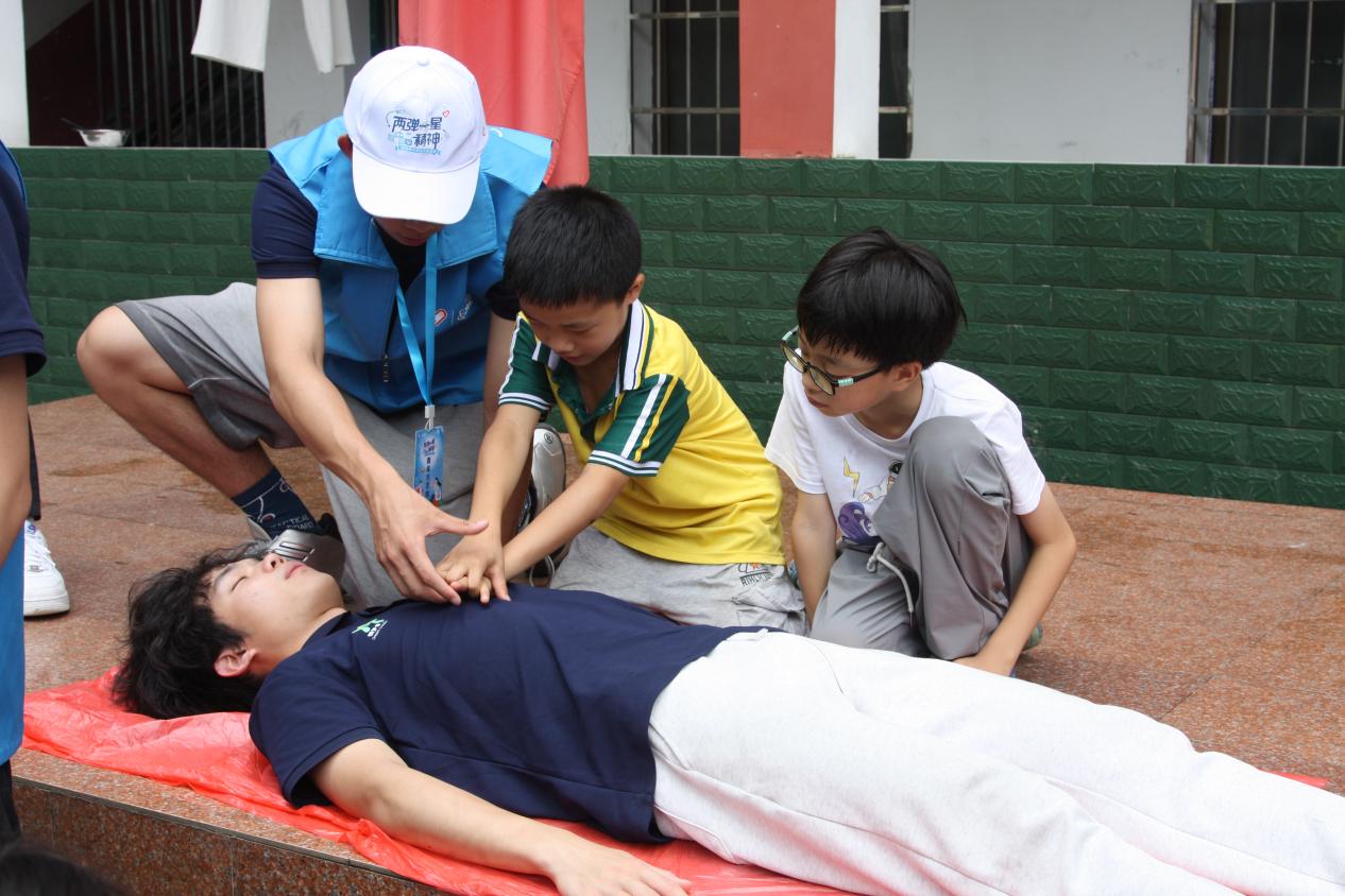 圖為團(tuán)隊(duì)成員指導(dǎo)學(xué)生掌握心肺復(fù)蘇 供圖 謝雨芹