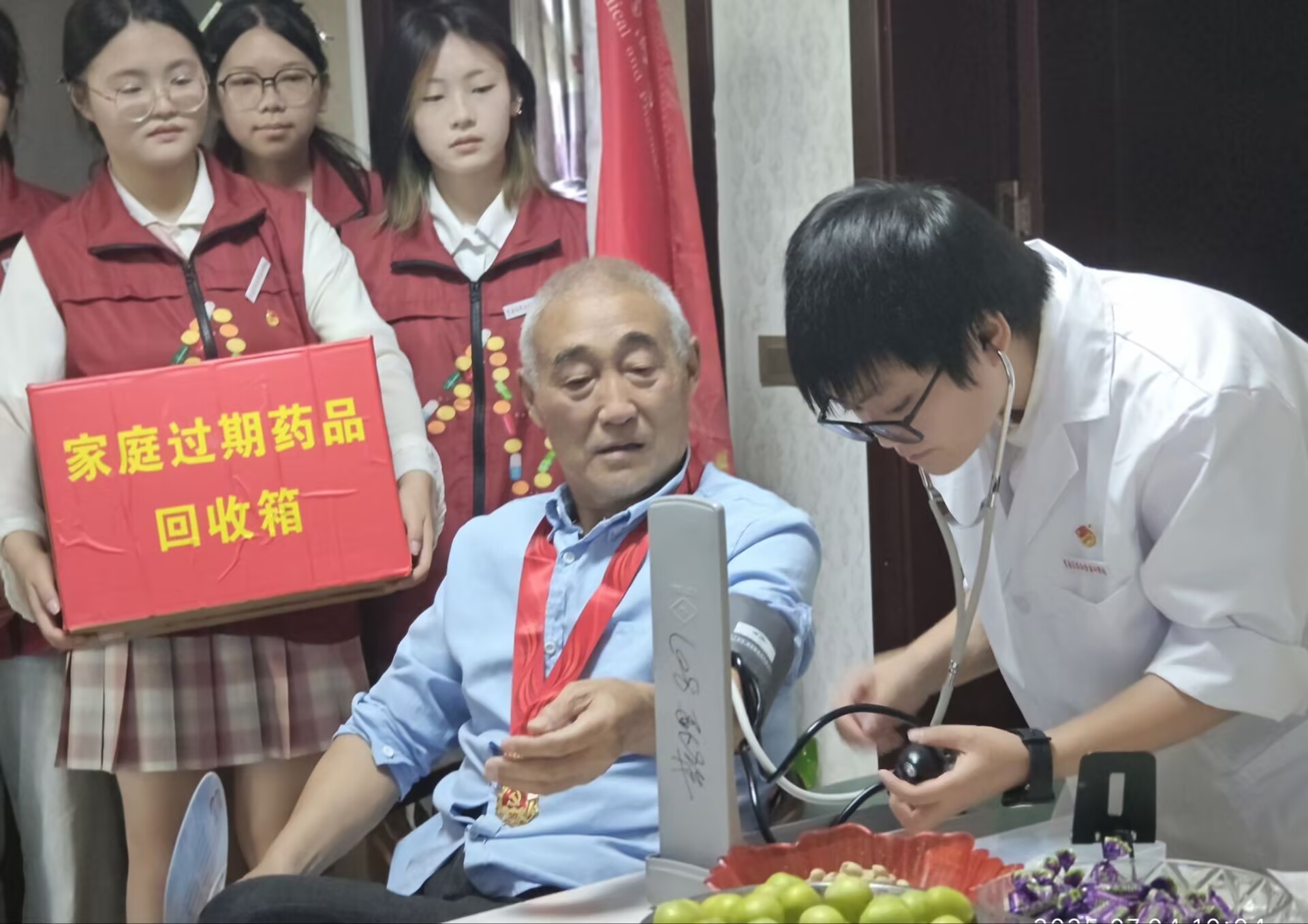 圖為志愿者為老黨員進(jìn)行血壓測量。李興宇 供圖