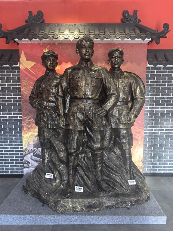 走進棠溪革命歷史紀念館,館內(nèi)矗立的雕像令人印象深刻:吹號角的戰(zhàn)士雕像身姿挺拔、神情堅毅,仿佛正以激昂的號聲喚醒人們對革命歲月的記憶;“槍桿子里出政權(quán)”的紅色標語,彰顯著革命先輩武裝斗爭、追求勝利的堅定信念;多位革命志士并肩而立的群雕,目光如炬、氣勢如虹,傳遞出團結(jié)戰(zhàn)斗、為理想拼搏的無畏勇氣。這些雕像與文物展品相互呼應(yīng),全方位構(gòu)建起棠溪革命歷史的生動圖景。