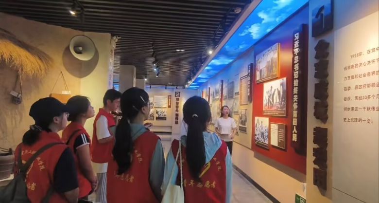 圖為團(tuán)隊(duì)成員在東圳精神展覽館參觀東圳大壩的建設(shè)往事。林榕城攝
