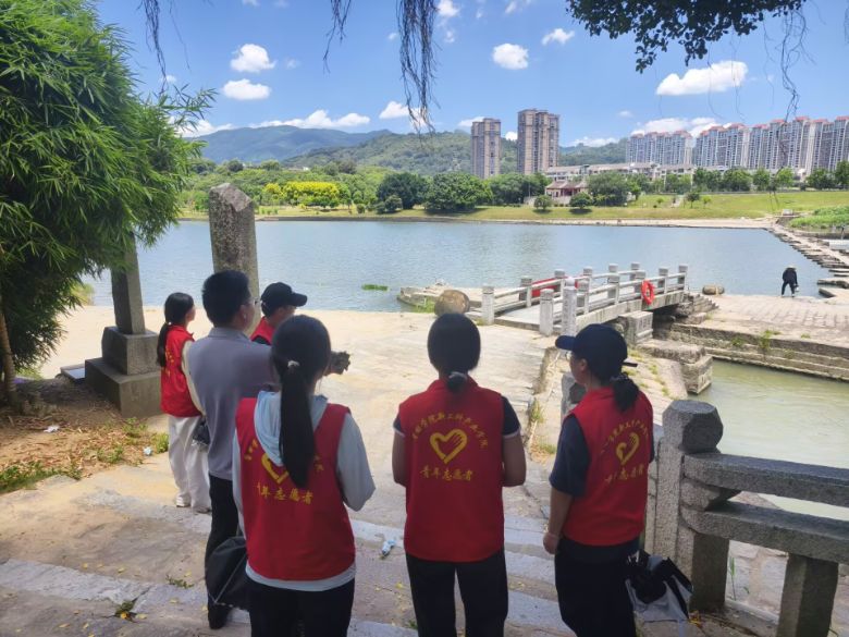 隨后,團(tuán)隊(duì)前往木蘭陂公園。在古堰旁,木蘭陂管理者向隊(duì)員們娓娓道來(lái)木蘭陂的由來(lái)。原來(lái),在宋代以前,莆田南洋平原飽受溪水泛濫、海潮倒灌之苦,百姓苦不堪言。1064年,侯官縣人李宏應(yīng)詔攜資7萬(wàn)緡前來(lái)筑陂,在僧人馮智日的協(xié)助下,歷時(shí)8年,于1072年建成木蘭陂。木蘭陂巧妙利用地形和水流規(guī)律,實(shí)現(xiàn)“排洪、擋潮、灌溉”三位一體,從根本上解決了當(dāng)?shù)厮紗?wèn)題,造福了一方百姓。千年古堰木蘭陂靜靜佇立,其精妙的設(shè)計(jì),展現(xiàn)出古代水利工程的卓越智慧。從東圳水庫(kù)到木蘭陂,隊(duì)員們深刻感受到莆田治水歷史的傳承與延續(xù),見證了不同時(shí)代保障水安全的堅(jiān)定決心。
