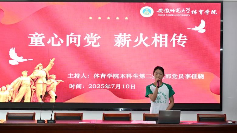 導語:安徽師范大學體育學院 “陽光愛心支教團” 在績溪揚溪中心小學的支教活動進入第五天。圍繞 “傳承紅色基因 激揚青春力量” 主題,支教團當天參與了績溪縣鎮團委慰問、體育精神講座,百年團史紅色主題講座等活動,為鄉村少年宮暑期生活注入活力,讓青春力量在鄉村教育沃土綻放。