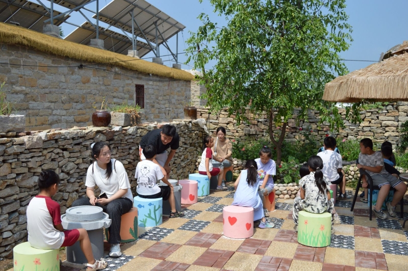 7月11日,煙育菏夢部分成員跟隨文化站站長的腳步,深入魚山新村體驗其傳統文化;另一部分成員則留在教室內進行招生,為家長們講解支教有關事宜。(通訊員 劉舒涵)