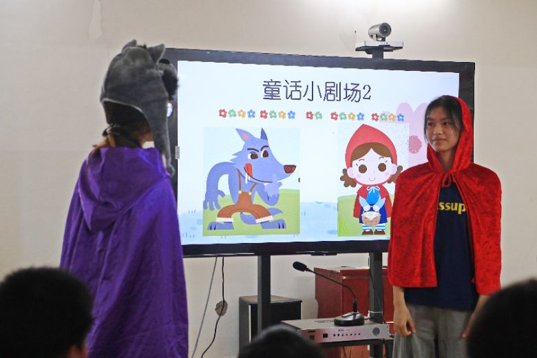 (圖為微塵心服務隊隊員演繹改編版童話劇場。)