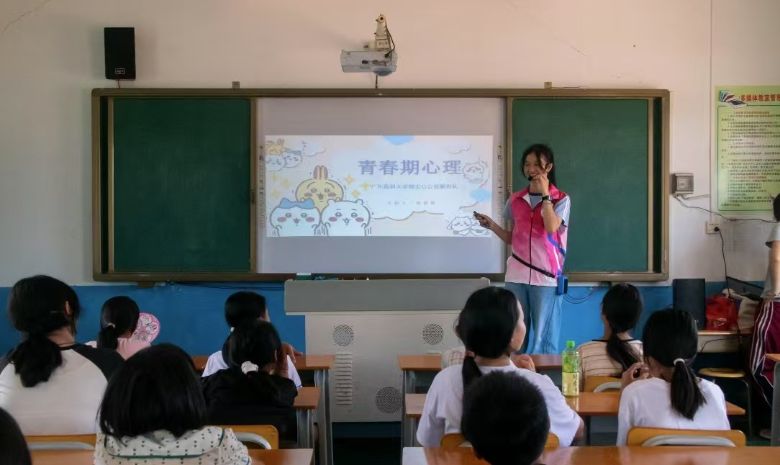 (圖為志愿者給孩子們宣講青春期心理知識 胡倩嫩 攝)