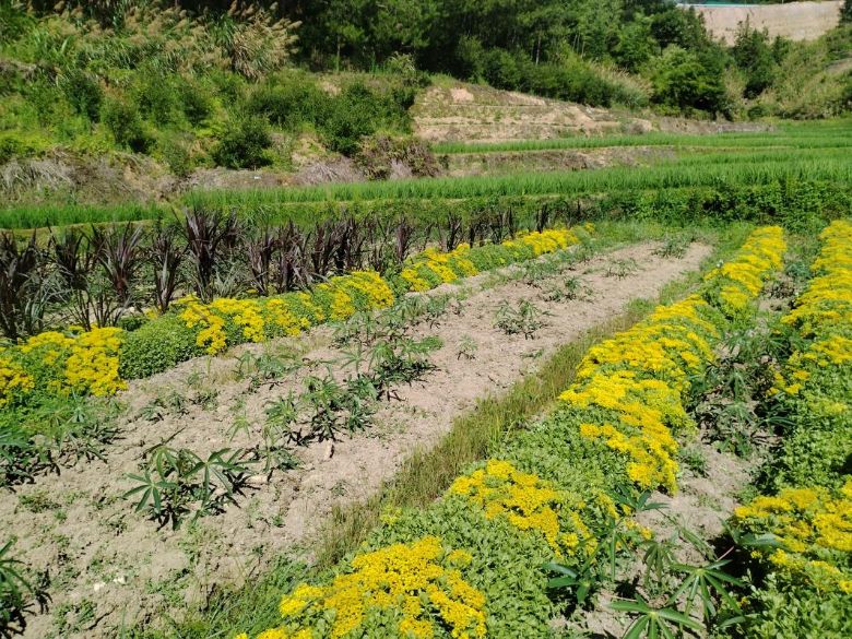 來到東南景天、伴礦景天、木薯、水稻、狼尾草等作物的種植區域,仔細觀察這些作物在不同耕耘方式下的生長狀態。在分塊實驗田里,作物們展現出不同的生長態勢,這些差異間接說明耕耘方式對作物生長的深刻影響。