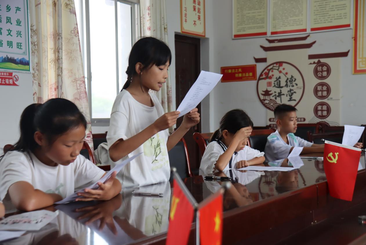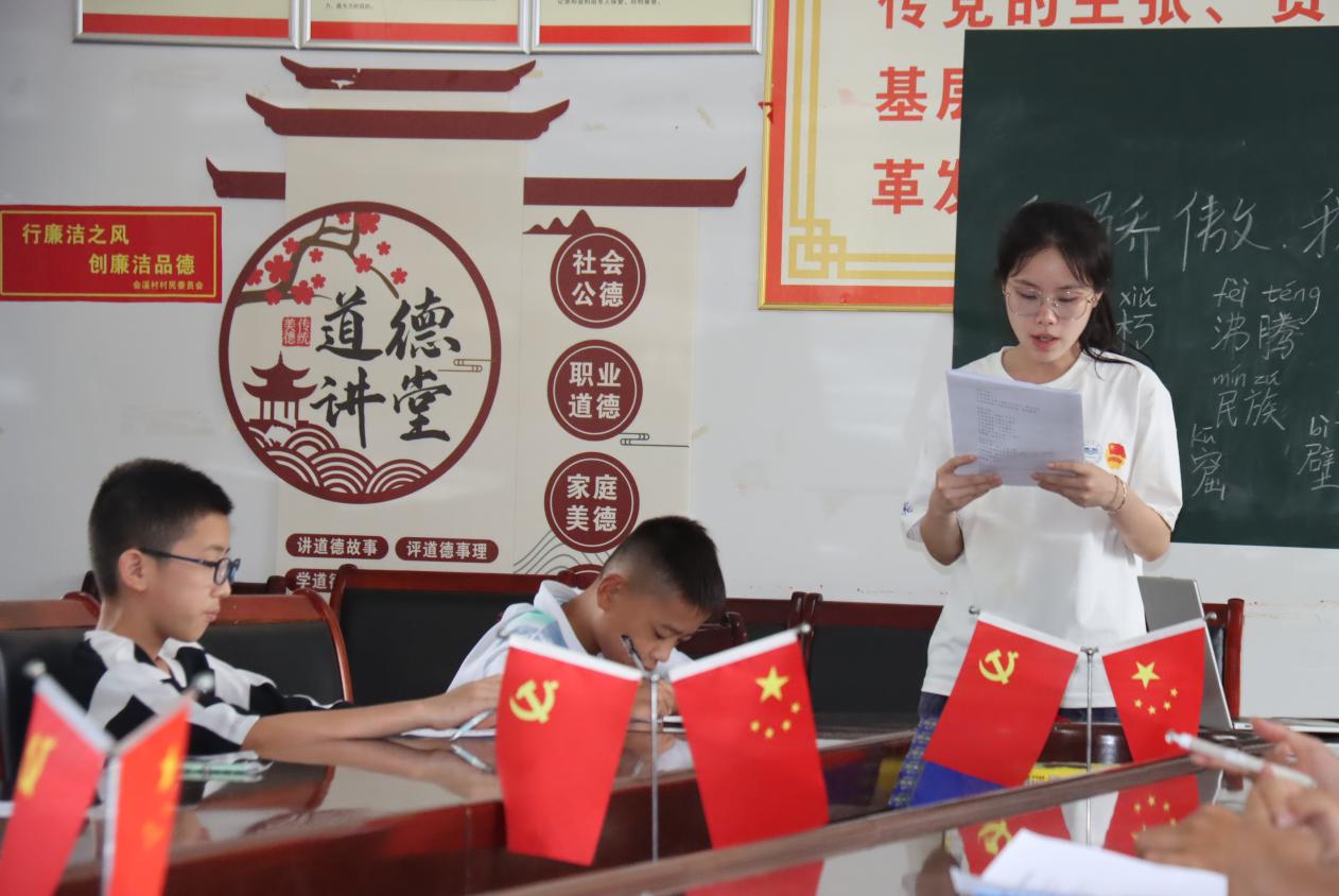 (通訊員:龔金鳳)7月9日下午,湘西會溪村的居委會傳來陣陣清脆激昂的朗誦聲。湖南第一師范學院“惠溪知行”鄉村振興促進團的志愿者們走進這里,為當地小朋友們帶來了一堂主題為“我驕傲,我是中國人”的口語朗誦課,讓紅色情懷在朗朗書聲中悄然傳遞。