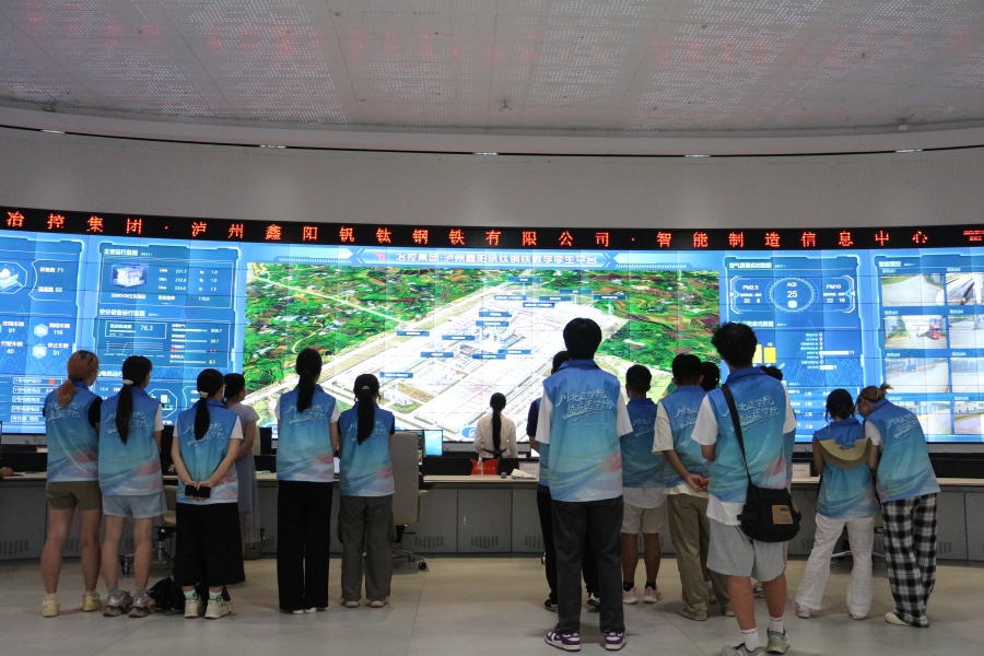 圖為團隊成員參觀鑫陽釩鈦鋼鐵智慧控制臺 曾莉娟 攝