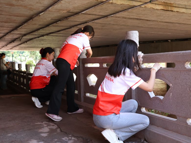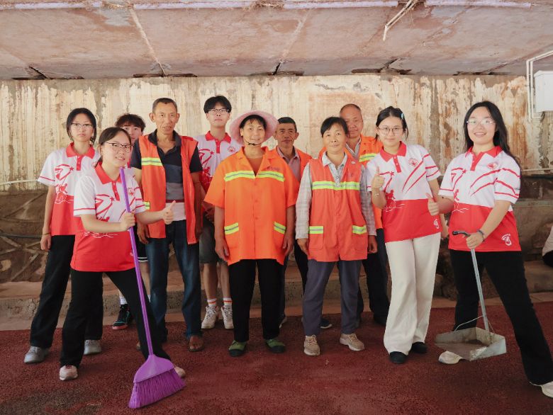 在河道清理環節,實踐隊與當地環衛力量形成高效協同。針對古藺河沿岸零星垃圾污染這一治理難點,實踐隊前期調研梳理污染源頭,環衛工人憑借經驗解決清理難點,雙方全員參與、分工協作,共同完成河道垃圾集中清掃。紅色志愿馬甲與橙色環衛服相映,青年學子的熱情與基層勞動者的堅守碰撞出協作火花。這種聯動模式,既提升了河道治理實效,更探索出鄉村環境整治的多元協作路徑,為鄉村振興筑牢生態基石。