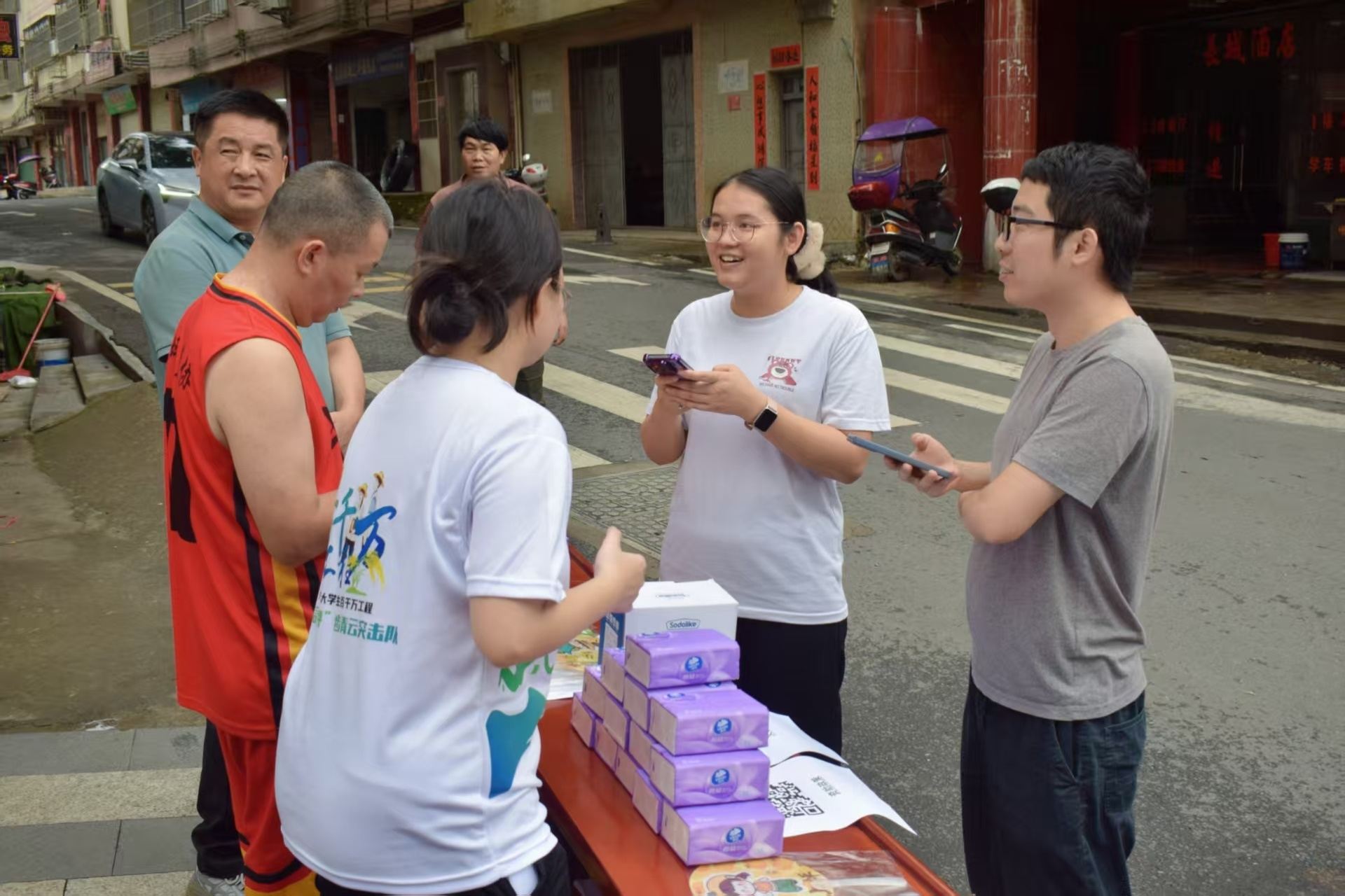 來到上坪短暫休整后,隊員們迅速分組進行入戶調研與街頭擺攤宣傳,共收集有效問卷百余份。調研聚焦村民對文創產品的認知度、鄉村旅游發展需求等議題。一位村民表示:“希望年輕人能用新點子幫上坪鎮把土特產‘包裝’出山!”團隊成員結合問卷反饋,初步規劃了以上坪金桔、客家民俗為原型的文創設計方案。