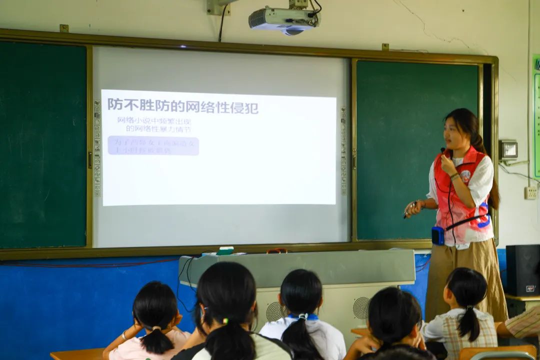 孩子們神情凝重,深刻認識到虛擬空間并非法外之地。“原來隔著屏幕的傷害也是真的,我要學會保護自己。”課后,一位女生鄭重地對志愿者說。課堂末尾,志愿者傳授“不輕信、不透露、不約見”的自護原則,為孩子們筑起第一道數字防線。