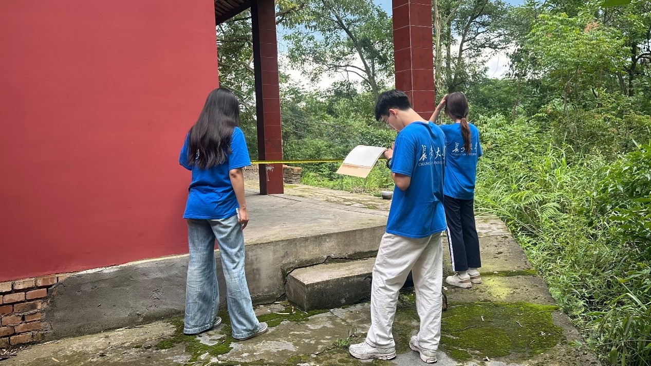 實踐隊進行火龍廟測繪。供圖王雨琪
