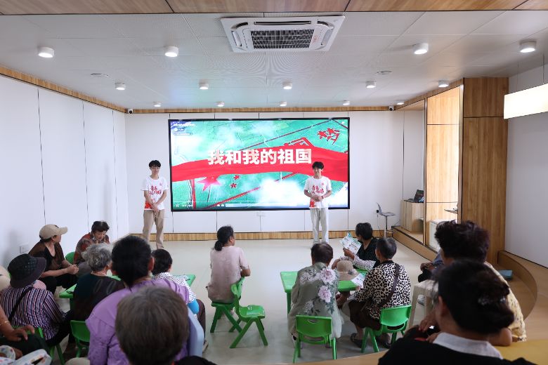 "我和我的祖國,一刻也不能分割——"志愿者們以《我和我的祖國》《歌唱祖國》等經典紅歌為媒,搭配情景化舞蹈表演,用藝術形式重現崢嶸歲月。當熟悉的旋律響起,現場老人隨著節奏輕聲和唱,不少人眼中泛起淚光:"這是我們年輕時的歌,唱的就是當年的熱血。"歌舞交織的沉浸式體驗,讓紅色記憶在藝術共鳴中得以活化傳承。