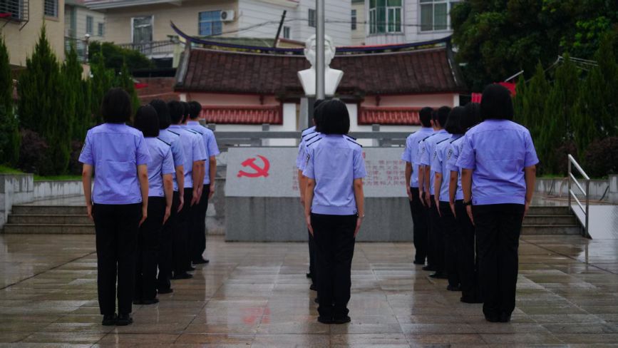 “紅磚滿院,訴不完滿腔柔情;細雨綿綿,道不盡血灑熱土”四位隊員代表在雕像前肅立,整裝正容,莊嚴敬禮。隊員們立志:體悟傳承先輩的革命精神,以實干賡續紅色血脈,以擔當鑄就忠誠警魂,讓今后的從警之路閃耀忠誠“警”色,讓藏藍青春在報效祖國中綻放光彩。