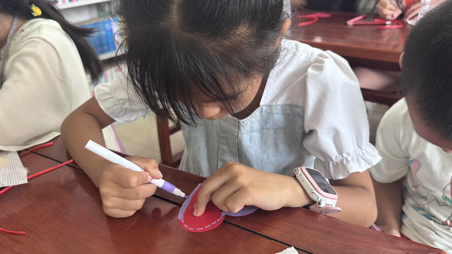 為了讓孩子們更好地理解和感受志愿者精神,志愿者們還精心設計了課堂互動環節。他們為孩子們準備了彩色卡紙,鼓勵孩子們親手制作心型賀卡,送給自己喜歡的志愿者。孩子們們有的低頭認真書寫著感謝的話語,有的則發揮自己的繪畫特長,在賀卡上畫上了可愛的圖案。每一張賀卡都飽含著孩子們純真的情感和對志愿者的深深敬意。