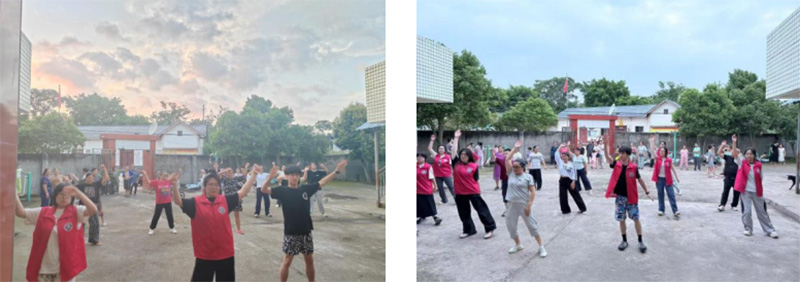 “鄉”約起舞,“村”光無限 為更深入地融入當地生活,促進文化交流,隊員們主動組織廣場舞娛樂活動。晚飯后,在村委會的廣場上,他們身著志愿服,與熱情的村民們一同跳起了歡快的廣場舞。他們認真領舞,村民們伴隨著音樂聲一同舞蹈,現場歡笑聲、音樂聲交織成一片,其樂融融。