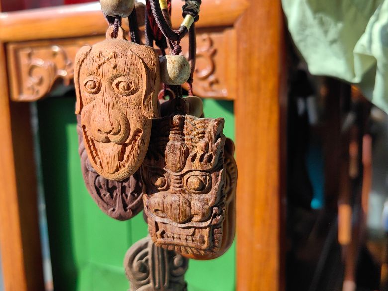 儺面具制作,每一步都飽含匠心。選香樟木為材,因其體輕且不易開裂;畫大概輪廓,勾勒雛形;打粗胚、修冠,塑造神韻;挖空試戴,確保舒適;以環(huán)保水性顏料,一點一滴上色;最后穿繩,一件承載文化與匠心的儺面具就此誕生。