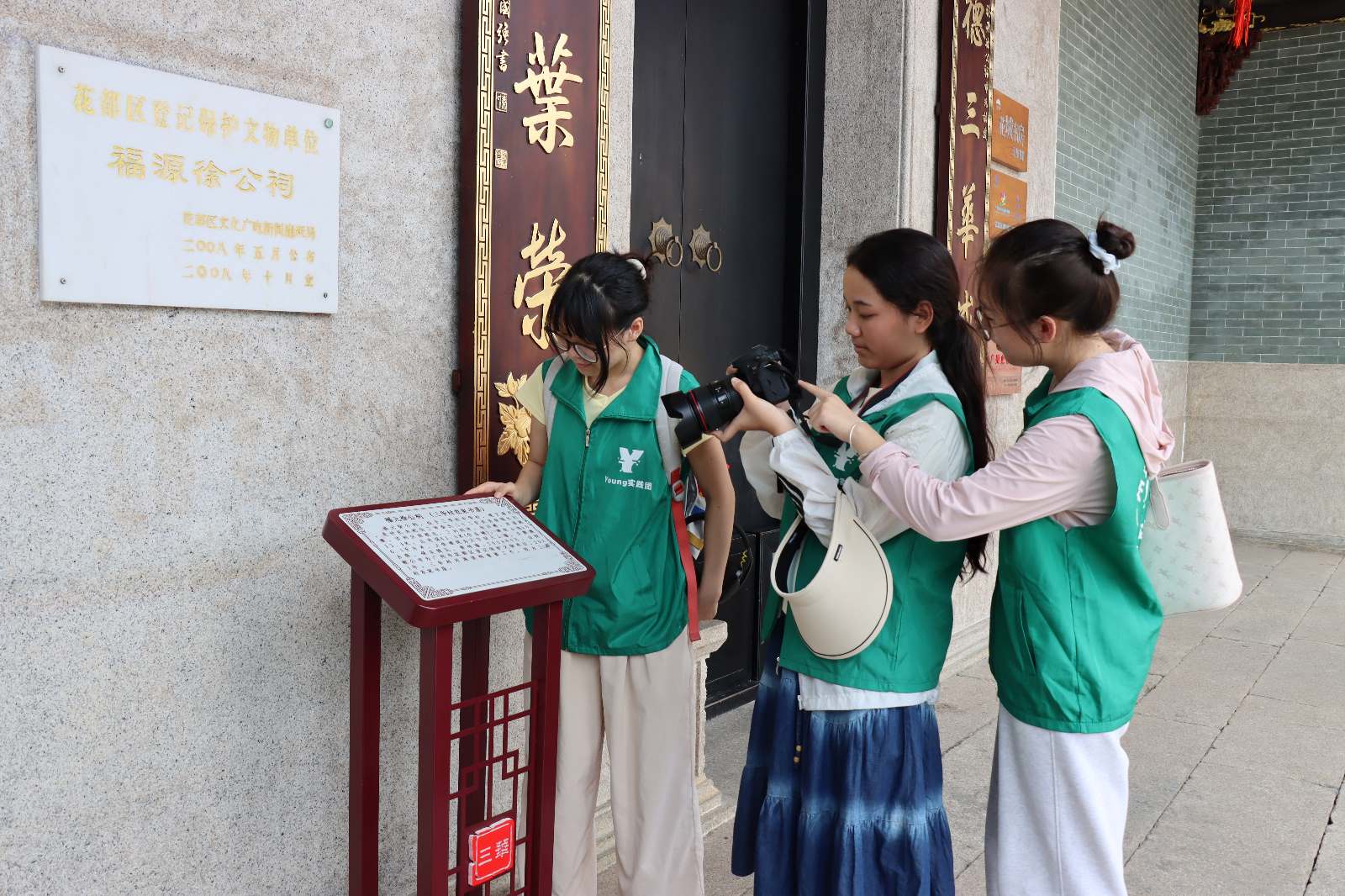 沿著村中主干道,Young實踐團成員來到了福元徐公祠。實踐團成員了解到這座百年祠堂于2008 年 5月被公布為廣州市花都區登記保護文物單位,如今又被活化利用為廣州市首批農家書屋示范點之一,集教學、展示、研討、閱讀等功能于一體。游客若是走乏了,可在祠堂外的美食街區購買食物補充體力,亦可小憩在祠堂內的書齋之中,物質和精神食糧均可得到滿足,作為旅游的中間站再合適不過。
