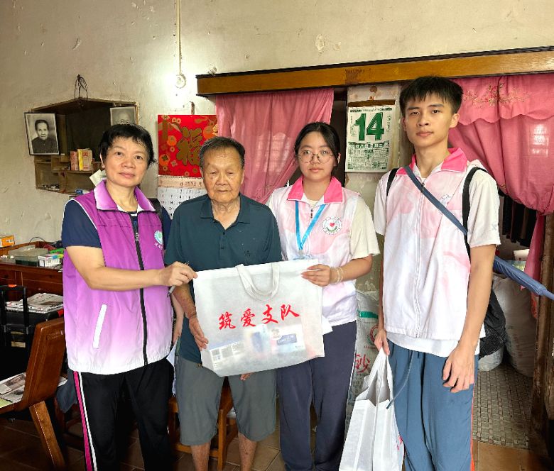 圖為筑愛支隊成員詢問老人近況 陳煒峰攝