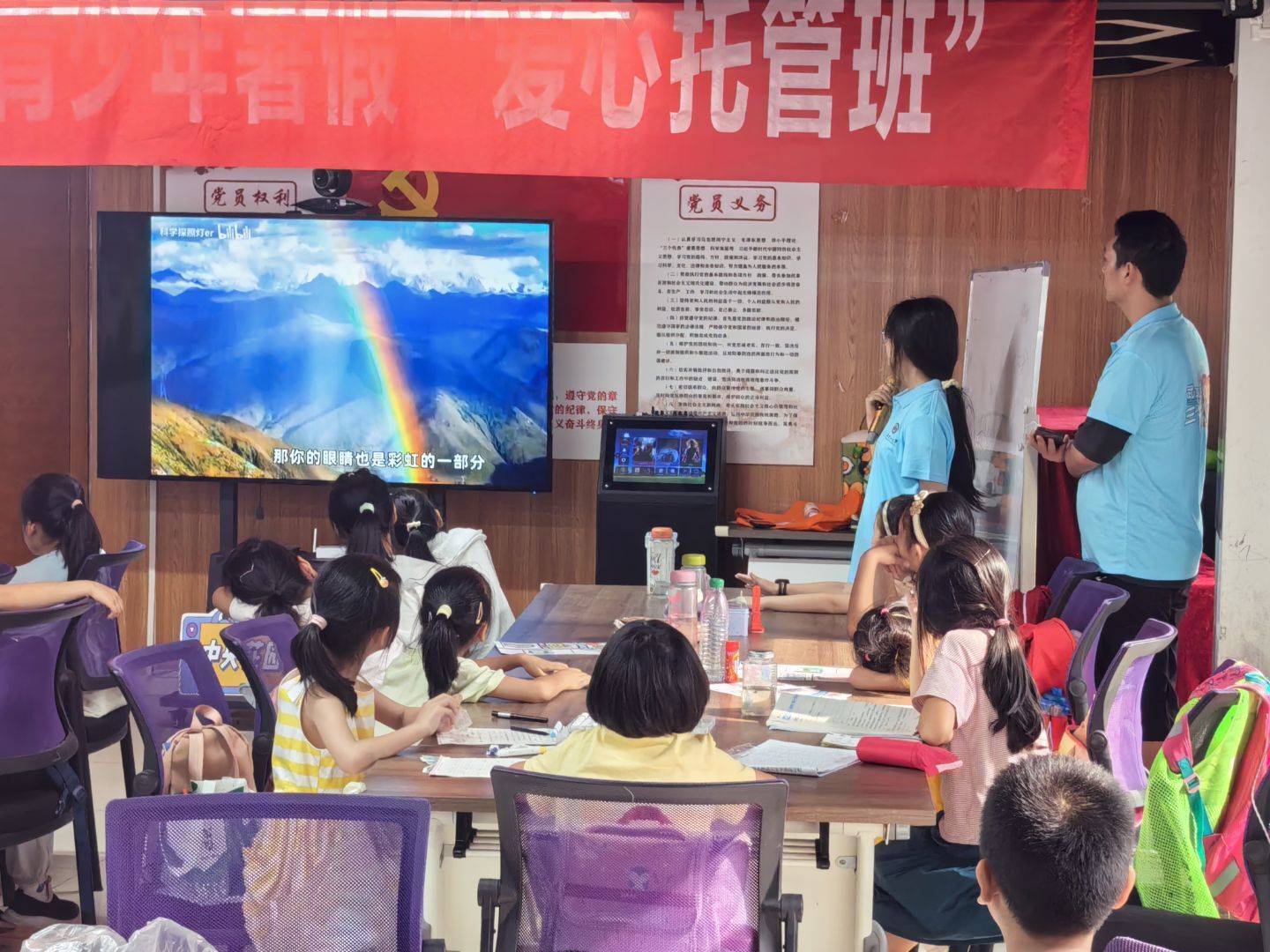 2025 年 7 月 10 日下午 4 點(diǎn),中心花園社區(qū)托管班里座無(wú)虛席、熱鬧非凡。熱血啟智社會(huì)實(shí)踐隊(duì)的隊(duì)員們帶著精心制作的“科普彩虹的形成與光的色散”PPT,為小朋友們帶來(lái)了一場(chǎng)精彩紛呈的科普講座。